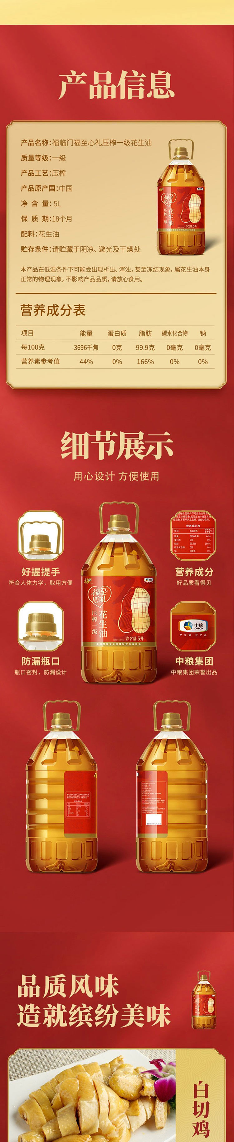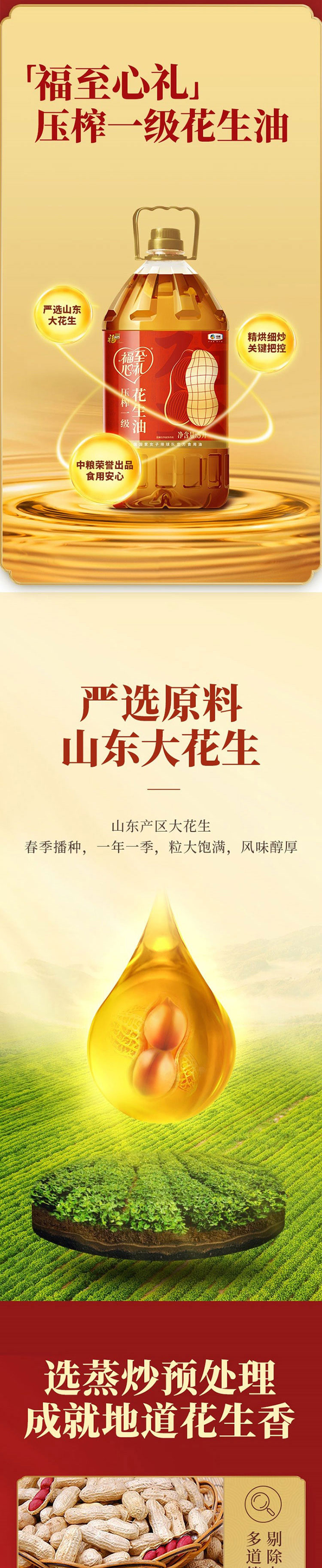 福临门 福至心礼压榨一级花生油 5L