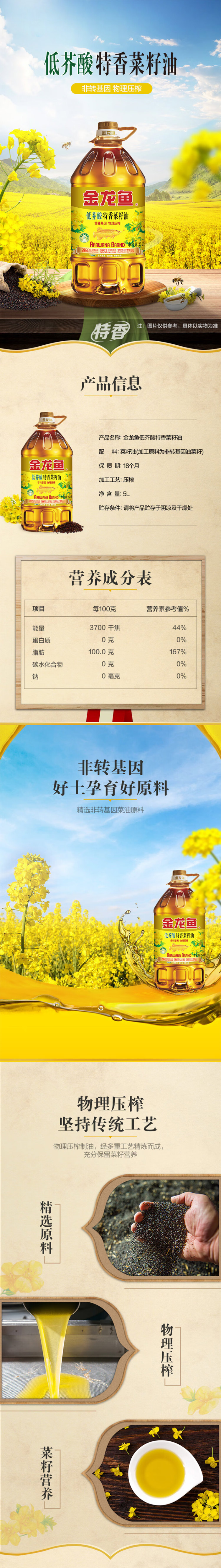 金龙鱼 低芥酸特香菜籽油 5L